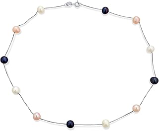 [ブリングジュエリー] 養殖淡水真珠 シルバー925製 白黒 ピンク パール ティンカップスタイル ネックレス 45cm