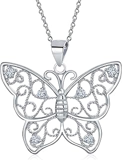 [ブリングジュエリー] CZ シルバー925製 銀線細工 フィリグリー 大振り 蝶々 バタフライ ペンダントネックレス