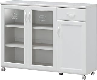 白井産業 カウンターワゴン 食器棚 キッチン収納 キャスター付 セシルナ ホワイト 白 幅約112cm 高さ約85cm 【2梱包】 CEC-8511CW CEC-8511CW