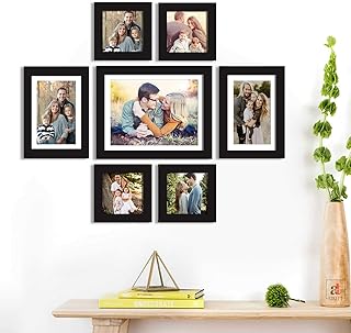 Art Street Synthetic Wood and Engineered Wood Chief Wall Photo Frame with Hanging Accessories (Black, 5x5, 6x8, 8x10 Inches) - Set of 7