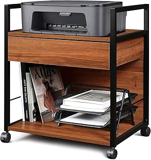 Lovinouse デスクワゴン サイドワゴン プリンター台 プリンターラック プリンターカート 引き出し付き キャスター付き 幅52×奥行30×高さ60cm 耐荷重60kg 2段 木製 机下収納 組み立て簡単 組み立て説明書付き 木目調 キャビネット オフィスワゴン 袖机 プリンターワゴン (ウォルナット)
