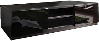 テレビ裏の配線スッキリ 背面収納 テレビ台 ローボード テレビボード 幅150cm (前板鏡面ブラック)/ キャスター付き 収納 テレビスタンド 黒 北欧 鏡面 ルーター収納