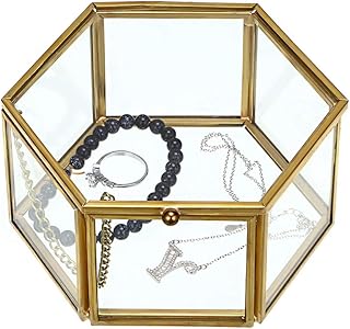BSTKEY ジュエリーボックス ガラス 透明 六角形 オシャレ 鏡台 洗面台 イヤリング ネックレス 指輪 ピアス ジュエリー アクセサリー 収納ケース 辺の長さ10CM