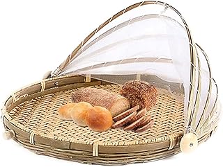 ネット付き竹干しざる 干し野菜バスケット 開閉簡単 ひもの網 干し野菜、花、ハーブ芽植物、スモーク用食材乾燥用 アウトドア用品 パン、料理等置きバスケット ウィッカー製 ピクニックにも適用