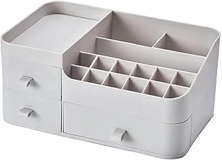 Begasso 化粧品収納ボックス コスメボックス 卓上収納 引き出し 小物入れ メイクボックス 大容量 収納ケース 安定 おしゃれ レディース ギフト(グレー 27.5x17.5x13)