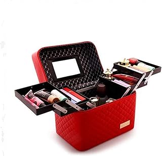 化粧品収納ボックス 化粧品ケース メイクボックス メイクボックス コスメボックス 大容量 収納ケース 小物入れ 大容量 取っ手付 (レッド)