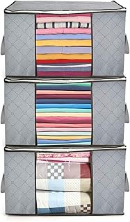 Fab totes 衣類収納バッグオーガナイザー [3パック/100L] 大容量衣類整理 強化ハンドル クリアウィンドウ 折りたたみ式収納容器 掛け布団 ブランケット 寝具 グレー
