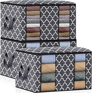 SkyEx Shop 衣類収納バッグ 3パック 大型収納容器 折りたたみ式クローゼットオーガナイザーコンテナ ブランケット/布/寝具/掛け布団/衣類/補強ハンドル付き 厚めの生地 頑丈なメタルファスナー 90L