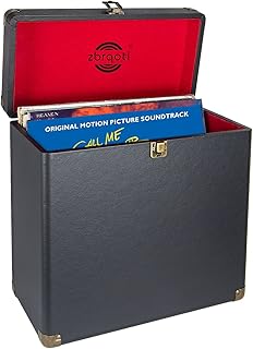 Zbrqotl ヴィンテージ ビニール レコード ストレージ レトロ レザー ポータブル キャリーケース 30以上のレコードアルバム用