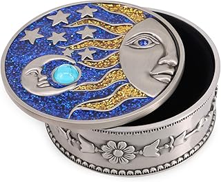 QTKJ ヴィンテージ 太陽 月 ジュエリー ボックス メタリックスター刻印 クラシック レトロ シルバー ジュエリー ストレージ オーガナイザー (ビッグ)
