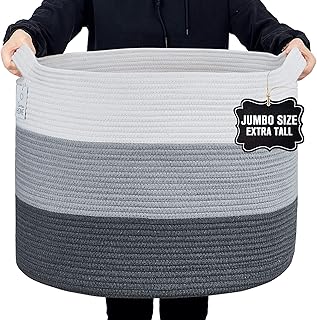 Nunus Home ジャンボ織コットンロープバスケット (22インチ x 22インチ x 16インチ) ブランケットバスケット ブランケット収納 大きなバスケット ブランケット用 ブランケットバスケット リビングルーム 収納バスケット 整理用バスケット グレー 3つのシェード