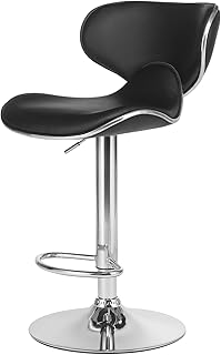 Ucomir 蝶 カウンターチェア ハイチェア ダイニングチェアー 回転式 昇降式 足置き付き PUレザー バーチェア 軽量 モダン ガス圧昇降 背もたれ付き スツール ダイニング キッチン おしゃれ ソフトレザー 黒 ブラック 1脚