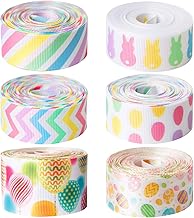 Cieovo 30ヤード イースターデイリボン エッグ バニー ストライプ パターン クラフト リボン ハッピーイースター ポリエステル リボン カラフル イースターテーマ リボン イースターパーティー クラフト ラッピングデコレーション 6スタイル