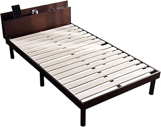 タンスのゲン 宮付き すのこ ベッド 【実用新案登録済】 スマホスタンド 3段階 高さ調節 2口 コンセント ブックシェルフ ベッドフレーム ブラウン 49600033 11AM (69601 69613)