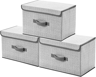 GRANNY SAYS クローゼット用収納容器 蓋とハンドル付き 長方形収納ボックス ファブリック収納バスケットコンテナ グレー/ベージュ Mサイズ 3パック