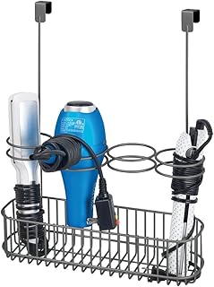 mDesign ドア掛け バスルーム ヘアケア&スタイリングツール オーガナイザー ストレージバスケット ヘアドライヤー、フラットアイロン、カールワンド、ヘアストレートナー、ブラシ – 内側または外側に吊り下げ グレー 12646MDBST