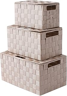 TcaFmac収納バスケット 収納ボックス 3個セット 三つのサイズ 取っ手付き 生活雑貨 おもちゃ収納 オフィス収納 浴室部屋収納 おしゃれな収納ボックス 可愛い収納ボックス 収納かご おしゃれなインテリア雑貨 車用収納 引き出し手編み 小物収納 (ベージュ)