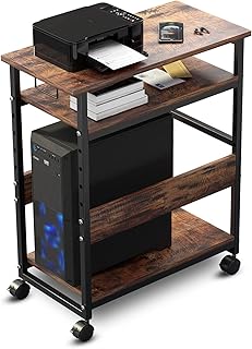パソコンワゴン昇降式 PCワゴン CPUワゴン 高さ調節可能 サイドワゴン キャスター付き プリンター台 サイドワゴン 机 収納 書類 収納 棚板 移動便利 (Brown)