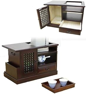 サイドテーブル ソファサイド 木製 トレー付き キャスター付き テーブル ワゴン 引き出し 小物入れ 桐製 ■ 桐製ポットワゴン トレー付き