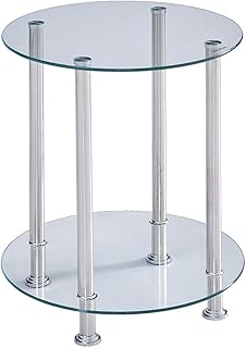 Conlink(コンリンク) サイドテーブル 丸テーブル 円型 ミニテーブル ナイトテーブル ベッドサイド ソファサイド ステンレス脚 リビング 組み立て簡単 おしゃれ ガラス 2段 シンプル (2段/透明ガラステーブル)